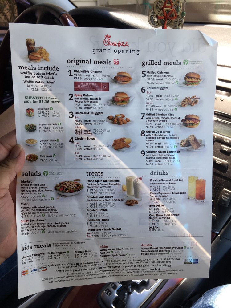 Introducing the menu at Chick-fil-A - N Blackstone Ave reveals a delightful array of options that perfectly balance comfort and flavor. Located at 8040 N Blackstone Ave, Fresno, this chicken shop not only delivers mouthwatering meals but also caters to a variety of dietary preferences, including vegan options. The star of the show, the Chick-fil-A Sandwich Meal, features hand-breaded chicken, pressure-cooked to perfection in refined peanut oil, served with your choice of sides.